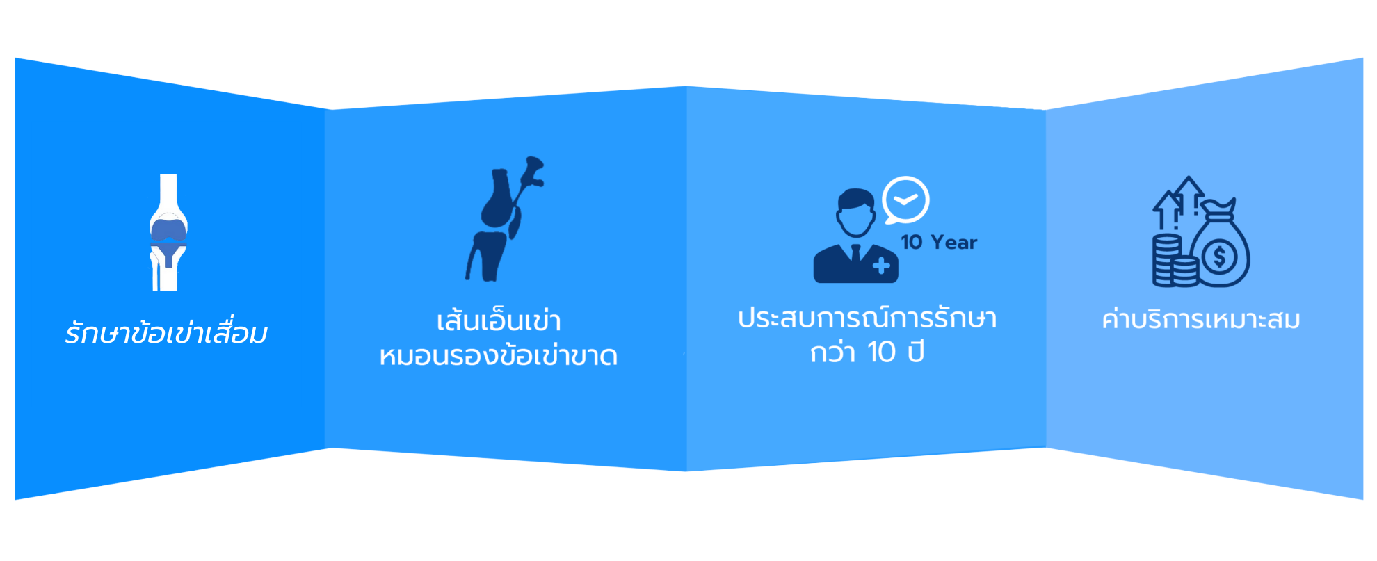 ปัจจุบันการรักษาเน้นเฉพาะเจาะจงทางด้านข้อเข่าในเชิงลึก ทั้งบาดเจ็บจากอุบัติเหตุ กระดูกหัก การบาดเจ็บจากการเล่นกีฬา เช่น เส้นเอ็นเข่า หมอนรองข้อเข่าขาด รวมถึงการรักษาข้อเข่าเสื่อมในคนอายุน้อย และสูงวัย ด้วยวิธีการไม่ผ่าตัด อาทิ เช่น ฉีดยาน้ำไขข้อเทียม และรักษาโดยการส่งตัวไปโรงพยาบาลเพื่อรับการผ่าตัดเปลี่ยนข้อเข่าเทียมหรือผ่าตัดเปลี่ยนแนวกระดูก
